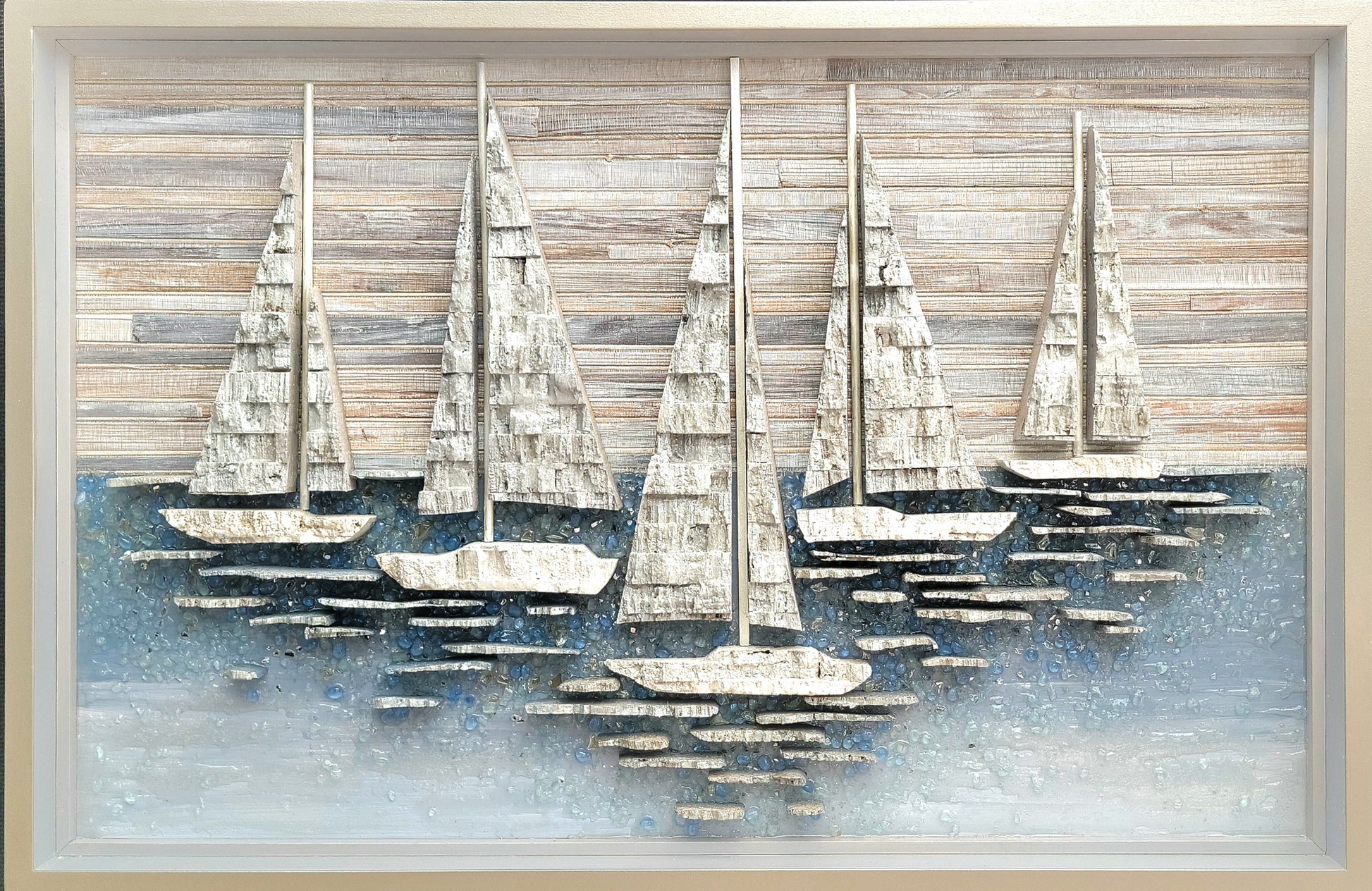 Created with carved cork, elegant grasscloth, glass mosaic and resin.